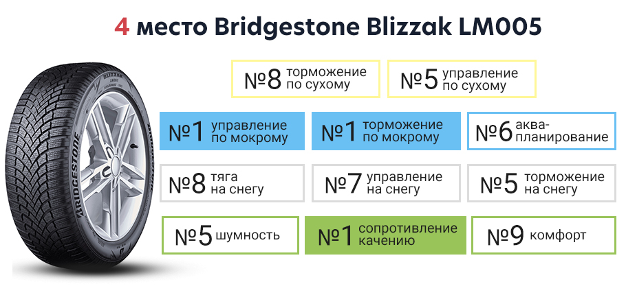 Самая тихая шина - Nokian; самые субъективно комфортные - Dunlop, Goodyear и Continental; самая эффективная топливная экономичность - Bridgestone и Continental, что впечатляет, учитывая их производительность.